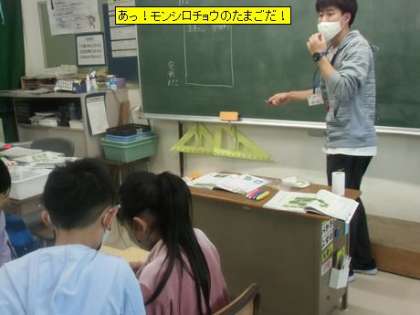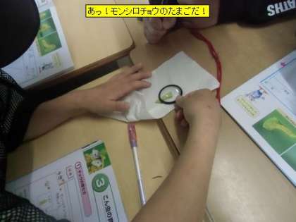 理科 あっ!モンシロチョウのたまごだ!(3年3組)