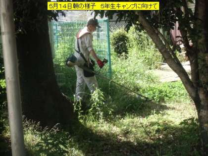 校舎を回ると、学年掲示板に「算数のふりかえりボード」あります。授業の中での子どもの気付きや考えの変容などを紹介しています。子どもたちの参考になればと思います。5年生は、今キャンプに向けて準備を進めています。今日は、実行委員さんたちが打合せをしていました。今日は、朝から校内整備んさんが校地内の草刈りをしてします。校地内が少しずつ整備されていきます。
