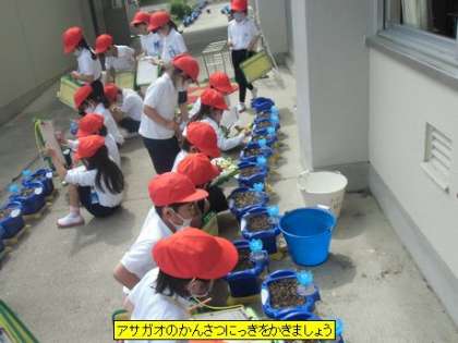 生活科 アサガオのかんさつにっきをかきましょう(1年3組)
