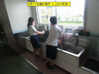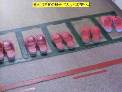 1年生のテラスに置いてあるアサガオが、この土日にしっかり芽を出していました。今日は雨の予報ですので水やりは必要なさそうです。朝の手洗いタイムの時間です。泡が出るまでしっかりと洗っています。1週間の始まりに、このようにスリッパがそろっていると気持ちがいいものです。