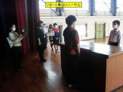 今日の長放課に、明日のリモート集会のリハーサル行いました。明日の集会では、学級委員や委員会の委員長・副委員長の認証を行います。