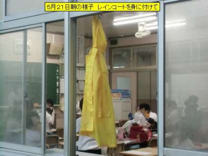 今日は、朝から強い雨が降り、登校も傘とレインコートを両方使っている子どもも多くいました。今日は、1日雨の予報です。