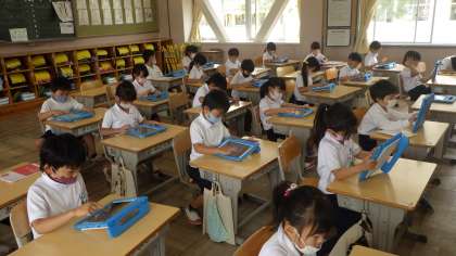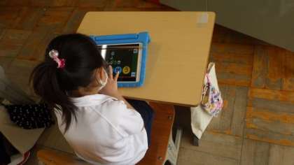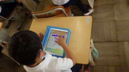 ひらがなやカタカナの学習をタブレットを使って勉強していました。