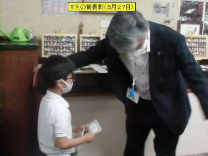 今日は、すえの賞の表彰で59人のすえのっ子が校長室に来てくれました。担任の先生から「快く仕事を引き受けたり、元気にあさいつができました」「手洗い場掃除で無言掃除を心がけ、隅から隅までていねいに磨いています」「係でなくても、クラスのために進んで行動することができます。最近は勉強もよくがんばっています」などの報告が届いています。