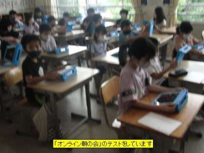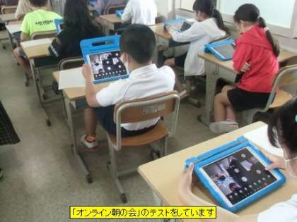 「オンライン朝の会」のテストをしています(4年3組)