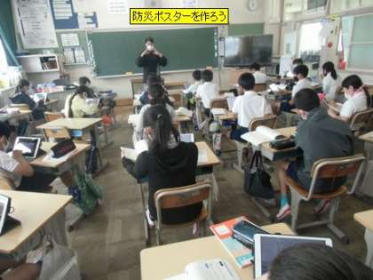 6年3組の皆さんが、防災ポスター作りに取り組んでいました。インパクトのあるポスターにするために、見出しや取り込む資料を何にするかを考えながらの作成になります。内容には、「地震対策」「火事対策」「水難事故対策」など内容はそれぞれですが、こだわりのある内容を入れている子がたくさんいました。できあがりが楽しみです。
