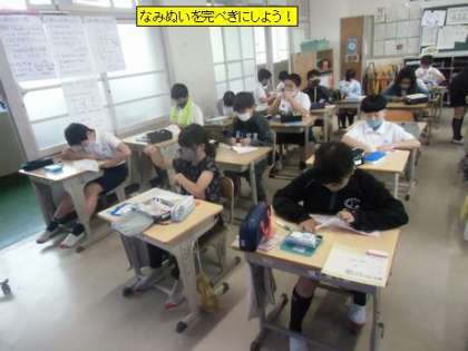 家庭科 なみぬいを完ぺきにしよう!(5年1組)