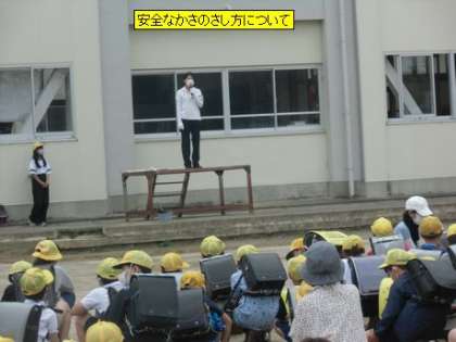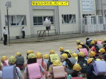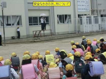 今日は、一斉下校の時に交通指導員の長谷川様に「安全なかさのさし方」についてお話をしていただきました。かさをさすときは、人がいないことを確認してかさの先を下に向けてさします。かさは両手でしっかりと持ちます。肩にかけるようなさし方はしません。横断歩道を渡るときは両手でかさを高く上げます。これからは、日がさとしてかさを使う子も増えてきます。事故のないよう、安全な登下校を心がけていきたいと思います。