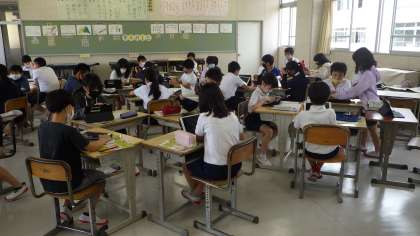 タブレットを使いリズムを作りました。グループでどんなふうに合わせるか話し合っていました。
