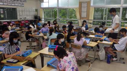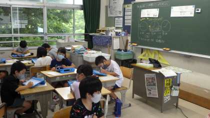 時間を使った問題を解き、友達と意見を伝え合っていました。