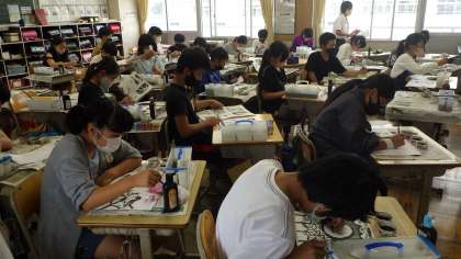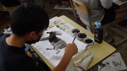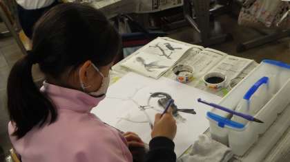 模写をしていました。墨の濃淡をうまく使い、丁寧に作品を描いていました。