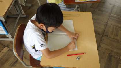 文章題から図をかいて、考えていました。集中して問題文をノートに書いていました。