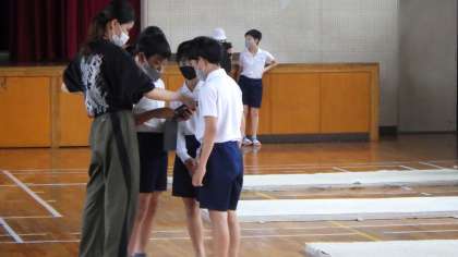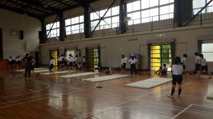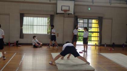 マット運動の練習をしていました。タブレットで動画を撮影して、どこを直せばいいのか客観的に見ることで、次の演技に生かしていました。