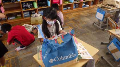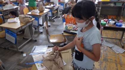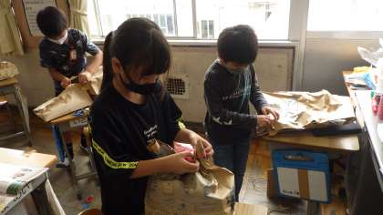 家から持ってきた紙袋を使って、動物など思い思いの作品を作っていました。いろいろな材料をどこにどのように使うか、工夫しながら活動していました。