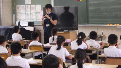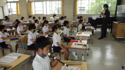 久しぶりにリコーダーを演奏していました。シの音だけを使って、いろいろなリズムを先生に続いて吹いていました。