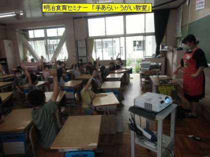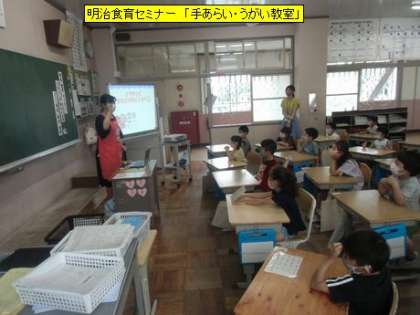 明治食育セミナー 「手あらい・うがい教室」(1年1組)