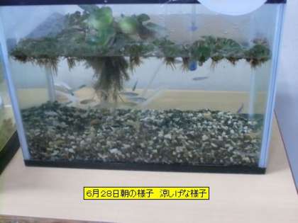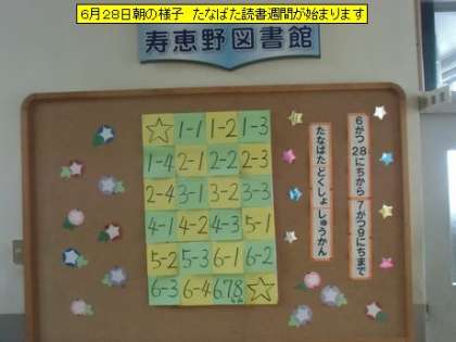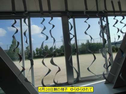 1年生の教室では、図工の作品「ゆらゆらゆれて」が風が吹くと涼しげに揺れています。5年生の教室ではメダカが水槽の中でゆったりと泳いでいます。今日から、「たなばた読書週間」がスタートします。図書室前には大きなパネルが用意されていました。クラスの目標が達成されるとパネルが開かれます。どんなパネルか楽しみにしたいと思います。今日も、1日がスタートしました。
