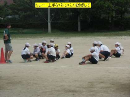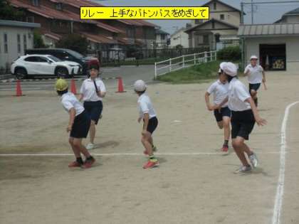 体育 リレー 上手なバトンパスをめざして(5年3組)