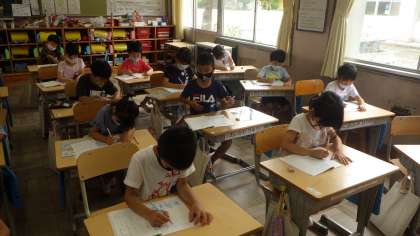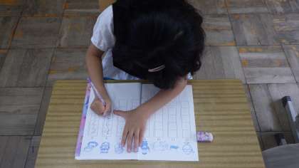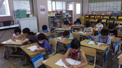 ことばのきまりに取り組んでいました。絵に描かれたものの名前を丁寧な字で書いていました。