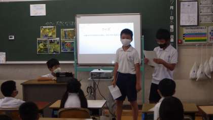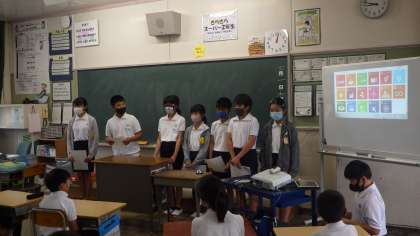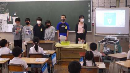 総合的な学習の時間で学んだことを2年生に教えていました。特に17の目標のうちの「水」について、クイズも取り入れ、分かりやすく伝えていました。