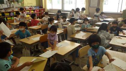 「こんなことをしたよ」の学習で書いた友達の文章を読んで、よかったところを見つけていました。
