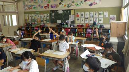 「サツマイモの育て方」の学習では、どのモデル文を使うと分かりやすい文章になるか話し合っていました。