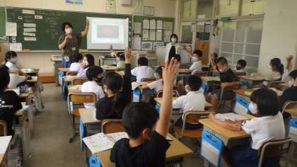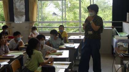 他の国の様子について英語を聞いて、メモしたり、日本との違いについて話し合っていました。