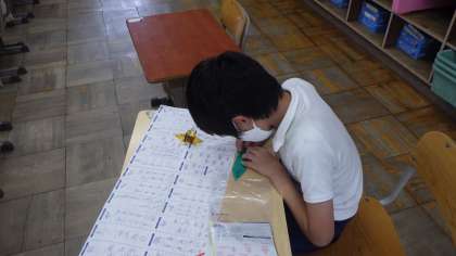 折り方の紙や動画を見ながら、自分の作りたい作品を折っていました。