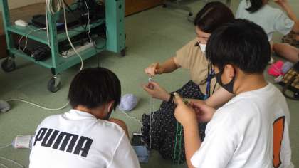かぎ針を使い、お花のモチーフを作っていました。
