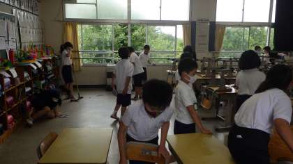 友達と協力しててきぱき清掃していました。きれいになってすっきりしました。