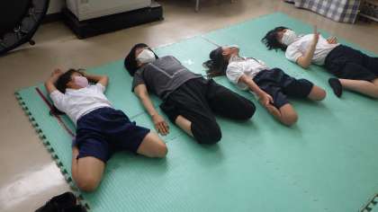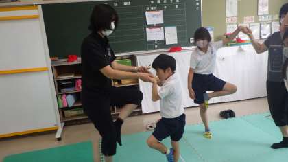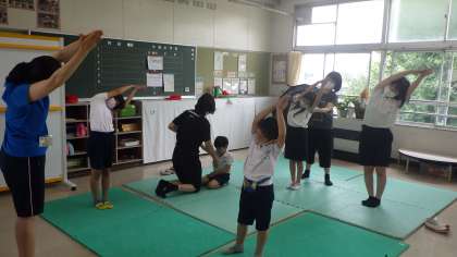 暑くなってきたので、教室で体操をしています。ヨガの動きを取り入れたり、足でじゃんけんをしたりして体を動かしました。体もずいぶん柔らかくなってきました。