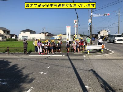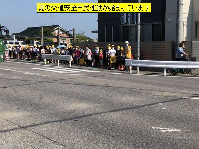 現在、夏の交通安全市民運動が始まっています。今日も、登校中の子どもたちに声をかけていただきました。ありがとうございます。