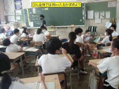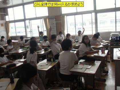 算数 びん全体では何ml入るか求めよう(6年1組)