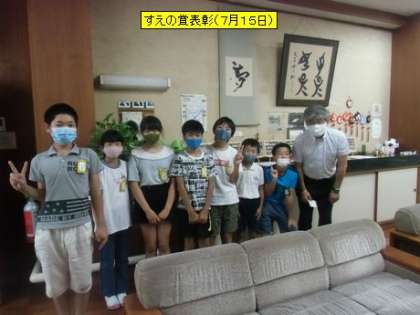 今日は、すえの賞の表彰で47人のすえのっ子が校長室に来てくれました。担任の先生から「給食係が困っているのを見て、自ら手伝いをしています」「学級や困っている友達のためにすすんで動いてくれます。ありがとう」「体育の準備体操を責任もってやってくれます。授業の挙手も多いです」などの報告がありました。
