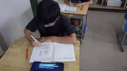 2つの棒グラフのよいところをそれぞれ見付けて、ノートにまとめていました。
