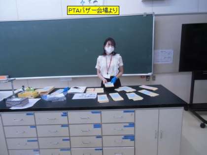 今日は、個別懇談会最終日です。PTAバザーも最終日となります。バザー会場の理科室には、素敵なマスクや手提げ袋などがありました。あれで、あの値段。お買い得です。
