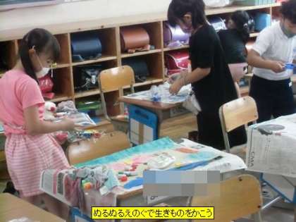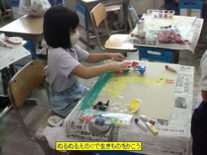 図工 ぬるぬるえのぐで生きものかこう(2年3組)
