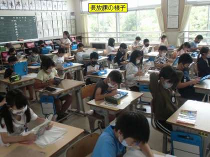 長放課に入りました。放課も少し子どもたちの動きをおさえながら過ごしています。本読みをしたり、タブレットで学習したことの復習をしたりしています。長放課の終わりは手洗いタイムです。
