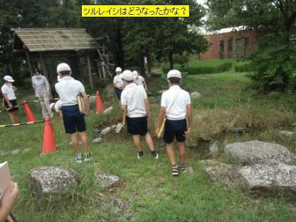 4年2組の皆さんが、いきいきランドに出てきてツルレイシの観察をしていました。7月に観察した様子と随分変化したことに気づいた子がたくさんいました。葉の数や実の色の変化をノートに記録していました。合わせて、とんぼやバッタからいきいきランドの秋の様子もとらえていました。