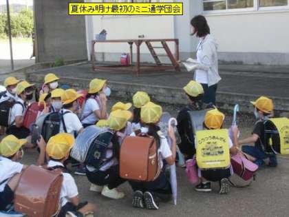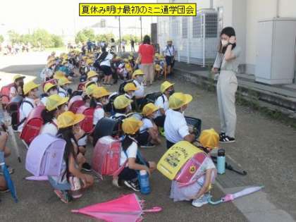 今日は、一斉下校前に夏休み明け最初のミニ通学団会を行いました。集合出発の様子や登下校の様子を担当の教員が確認しました。安全に登下校できることを願っています。