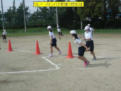 体育 リレー バトンパスをうまく行うには(5年1組)