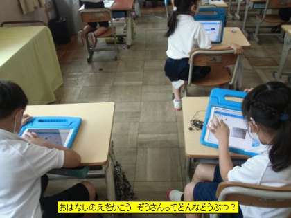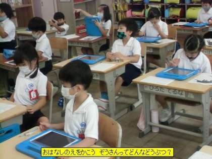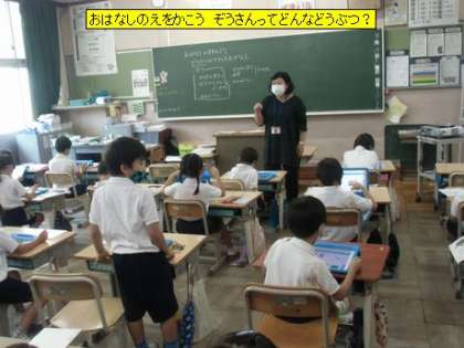 図工 おはなしのえをかこう ぞうさんってどんなどうぶつ?(1年2組)