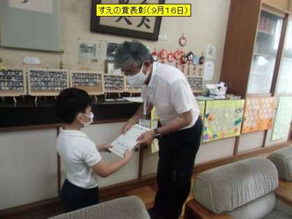 今日は、すえの賞の表彰で19人のすえのっ子が校長室に来てくれました。担任の先生から「友達のこぼれた給食を片付けてくれました」「放課中に教室をそうじしました」「細かいところにもよく気付き、動いてくれます。仕事も率先して行ってくれます」などの報告がありました。