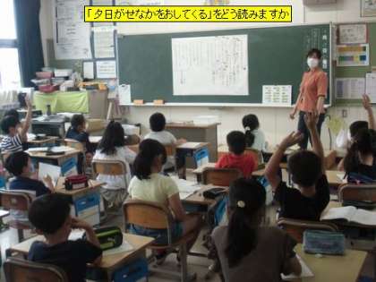 国語 「夕日がせなかをおしてくる」をどう読みますか(3年1組)
