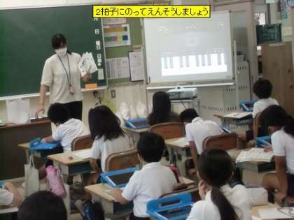 音楽 2拍子にのってえんそうしましょう 「ゆかいな木きん」(3年1組)