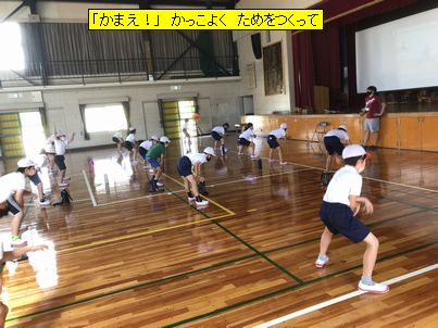 体育 「かまえ!」かっこよく ためをつくって(5年2組)
