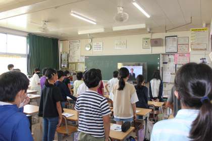 5年2組は、駅伝選手の大池達也選手、5年3組は、スピードスケート選手の世界明斗(みんと)選手の話をオンラインで聞きました。どんなことを大切にしているのかなど、子どもたちの今後に生かせる講座になりました。5年1組は、明日の予定です。