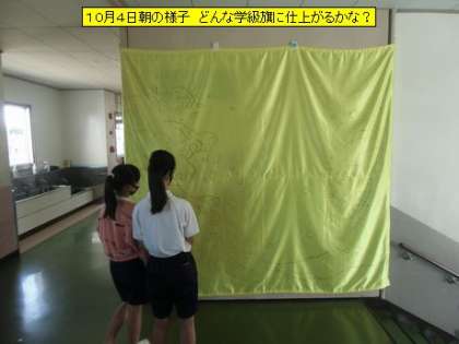教室を回ると、今週2年生が予定している町たんけんのコースが示されていました。百聞は一見に如かず。いろいろな所を自分の目で見てきてください。6年生が制作している学級旗のデザインが決まりました。どんな学級旗がスポーツフェスティバルの日にたなびくのでしょう。明日から各学年でスポーツフェスティバルの練習が本格的に始まります。全校のテーマももうすぐ決定します。