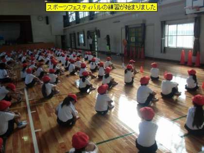 今日から本格的にスポーツフェスティバルの練習が始まります。割り振られた運動場や体育館の使用時間に練習をします。今日は、早速1年生の皆さんが体育館で練習をしていました。クラスごとの動きの組合せを、曲に合わせて練習していました。かっこいいポーズが決まり、楽しそうです。