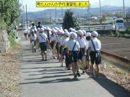 2年生は、今週の木曜日、金曜日に町たんけんの学習を予定しています。今日は「さいわいコース」「いやさかコース」「とがりコース」の3コースごとに列を作って歩く練習をしました。当日は、たんけんバッグ、水筒を持って出かけます。安全に気をつけて行ってきたいと思います。
